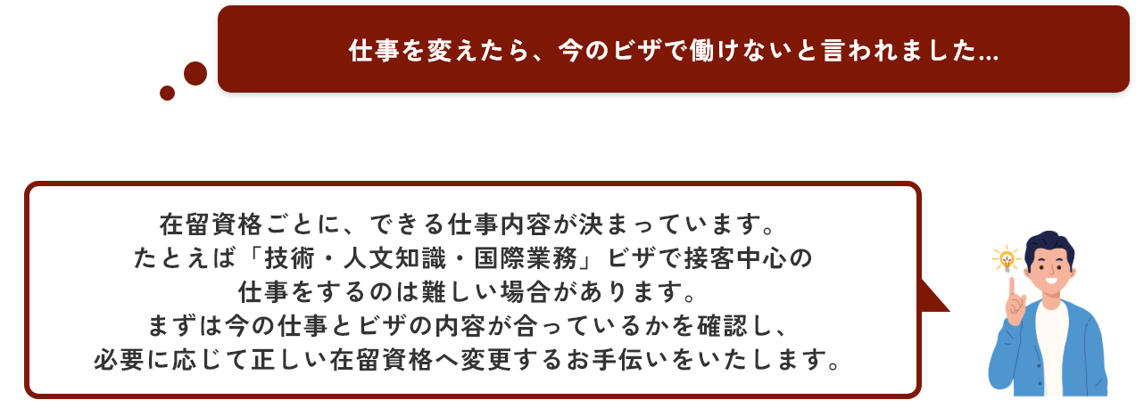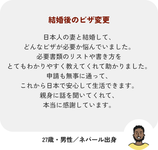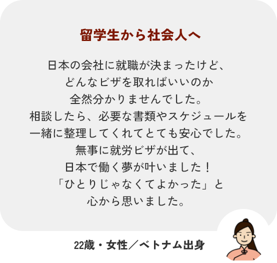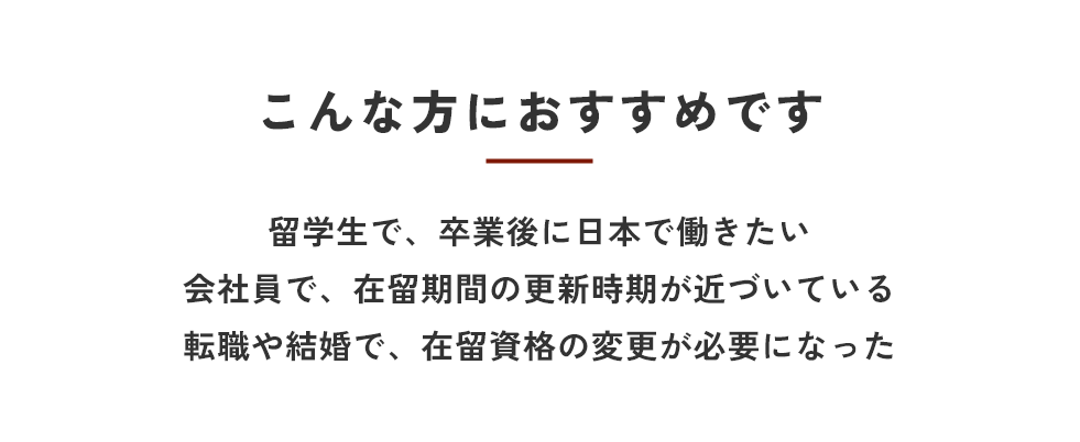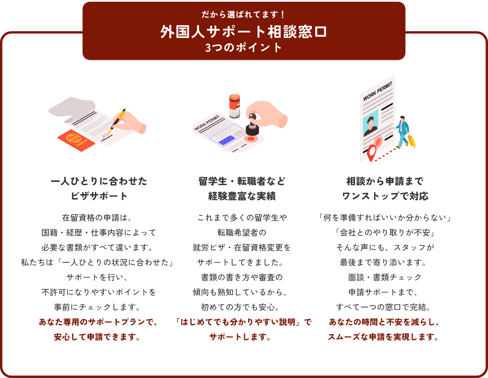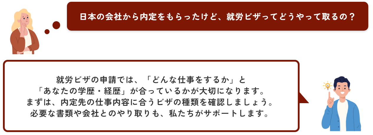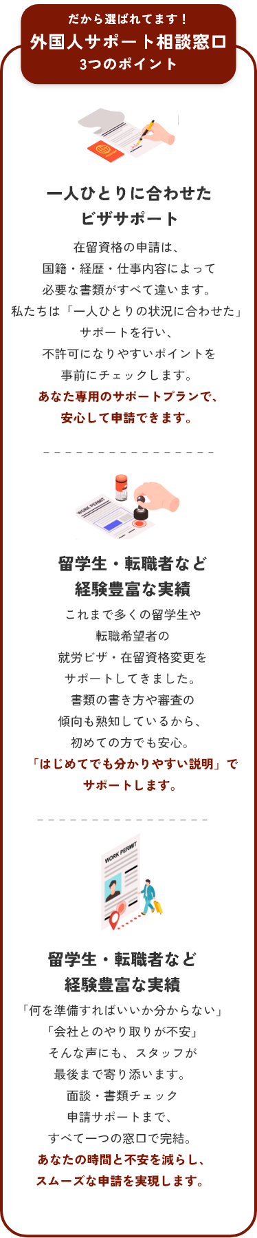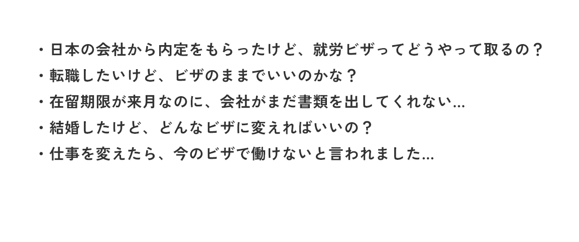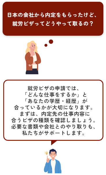 あなたの仕事や状況に合わせて、最適な在留資格をご提案します。