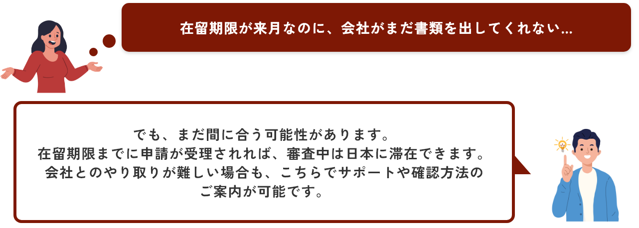 まだ間に合う可能性があります!在留期限前に申請が受理されれば、審査中も日本に滞在できます。